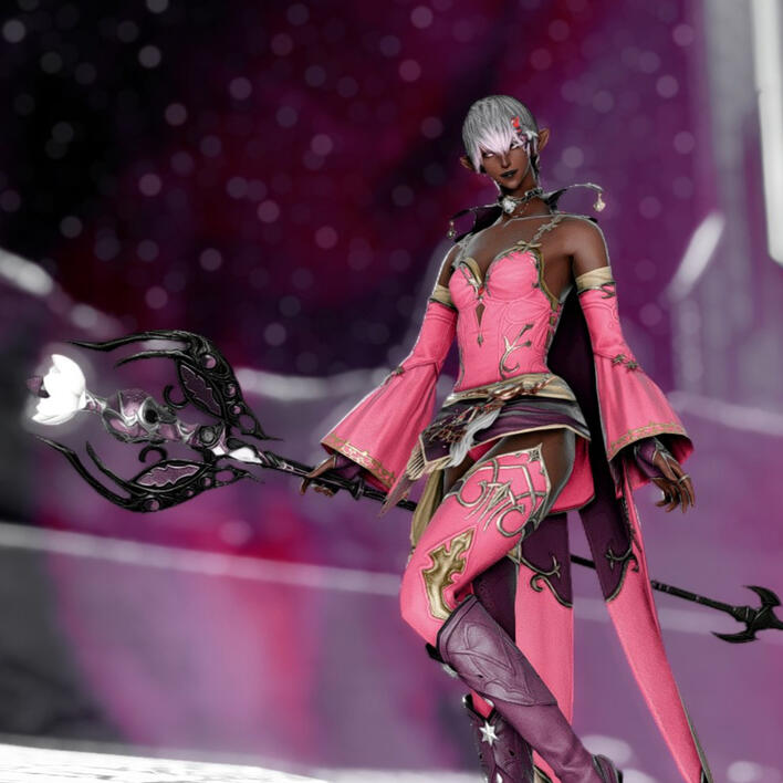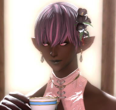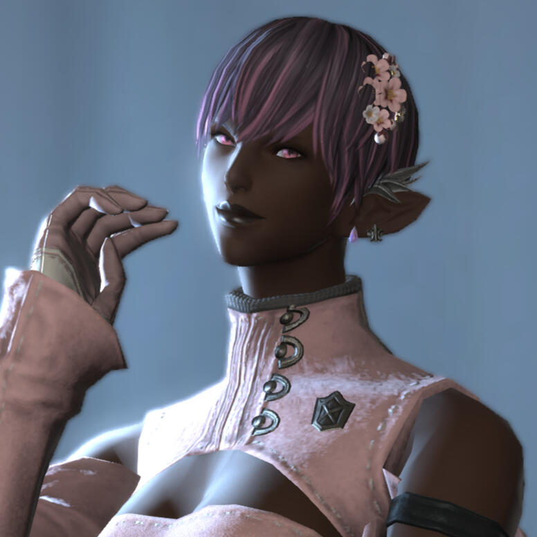 Etienne walks with practiced, precise grace, as if they are balancing a book on their head. Their words, like their movements, are carefully considered. They speak with a calm, pleasant demeanor in a lower register, with an accent that speaks to Ishgard, culture, and education. Manners are Etienne's first weapon. Their second weapon is sharp wit, their third is magic: if they start casting a spell, negotiation has failed.Etienne typically dresses in pinks and purples. Though their fashion runs an androgynous gamut, they slightly favor more feminine styles. Etienne thinks of their style as sweet and elegant with a dark edge. They are never seen in public without a full face of makeup, proper earrings and accessories, and high-heeled boots. They currently keep their hair in a pixie style with long bangs, though they sometimes use glamour prisms and extensions for a longer style. Etienne favors black lipstick, heavy eyeliner and shadow, and black nail polish.Unsurprising of someone who grew up in chilly Ishgard, Etienne is not particularly affectionate save for those they cherish deeply. They consider it a show of care to remember others' names, only using nicknames when prompted to, and often use the appendage "Miss" for feminine folk for whom they feel a fondness... though this can also be used in a condescending manner. Etienne cares very little for certain shows of masculine bravado, and usually lets this show if they care to notice them at all.Etienne maintains a polite but affable distance at first, though they often make efforts to be genuinely kind. A keenly observant, suspicious person may notice their social acuity, their tendency to subtly push buttons and stir the pot and draw conclusions from there. However, it is just as easy to read their demeanor as merely sweet, or vacuous but well-mannered. In friendly company, Etienne may tell tall tales or lie as a joke just to see what they can get away with.A seasoned mage, Etienne is almost never rattled. On rare occasion, overindulgence in certain pleasures - alcohol and tobacco - usually indicates anxiety. Etienne also has a petty, competitive streak that rears its head during challenging spars.Etienne’s thaumaturgy is influenced by their study of dance and bardic arts, utilizing their entire body and their staff as a weapon in unorthodox ways. They are powerful, always pushing themselves to their physical and aetherial limit.Etienne seeks beauty in their spellcasting, viewing it as an artistic performance. They take great pride in their creativity and skill but tend to show off. When they call themselves vain, they are only half-joking: they enjoy attention and admiration for their accomplishments. One might wonder if they are motivated only by their desire to be adored.